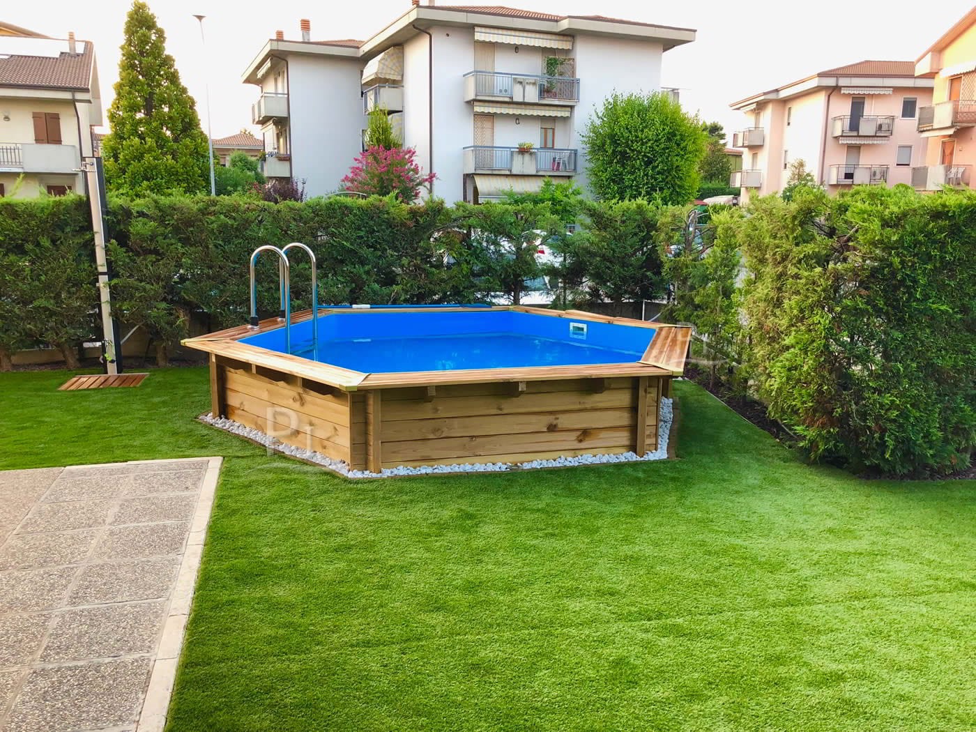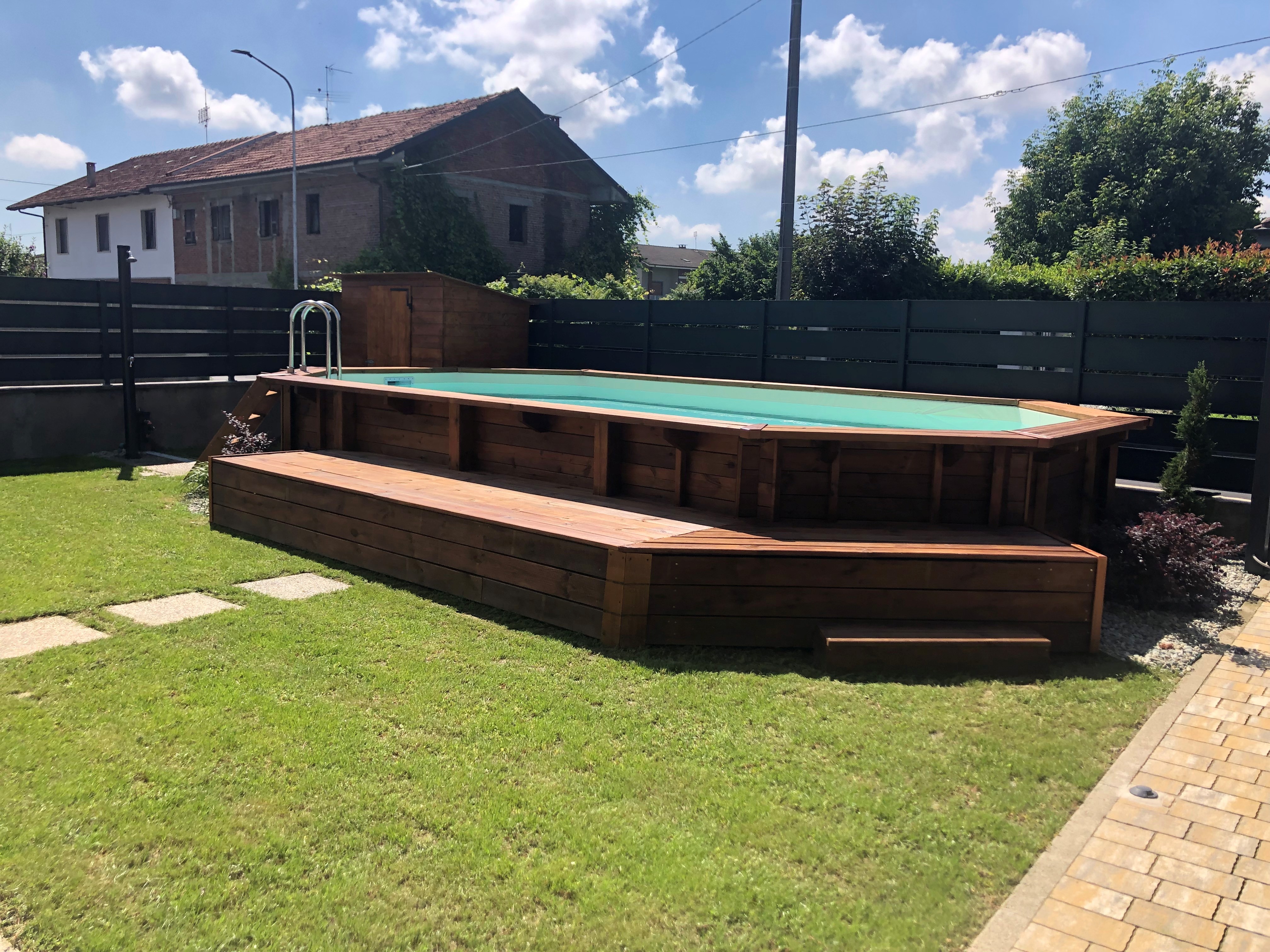 Piscine extérieure en bois avec échelle et revêtement résistant - Jardin 537