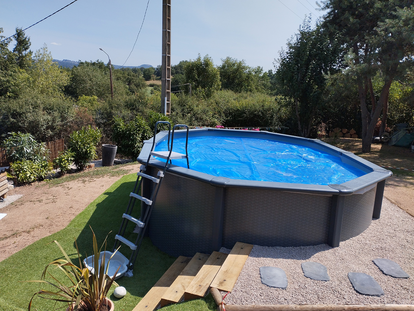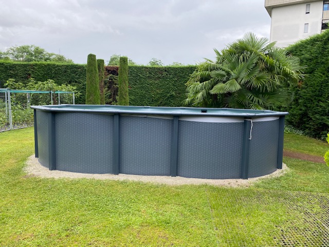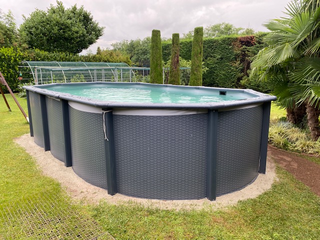Piscine Hors Sol Ovale en Acier avec Finition Rotin Graphite – Grey Pool 490x360