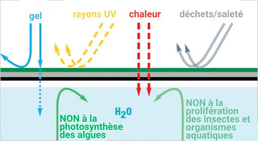 Le matériau a été étudié pour empêcher le passage des rayons solaires, qui détériorent rapidement la composition chimique de l’eau.