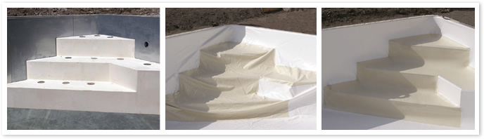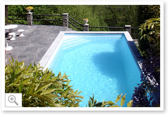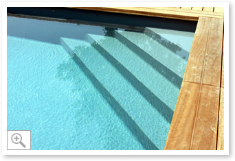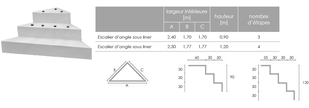 Escalier d'angle à placer sous le liner. Y compris kit de support pour la stabilité de l'escalier. Différentes tailles disponibles.