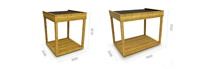 Il tetto di tutti i modelli arriva ad un’altezza di 2,7 m con una pendenza di 1,31° (2,29%).